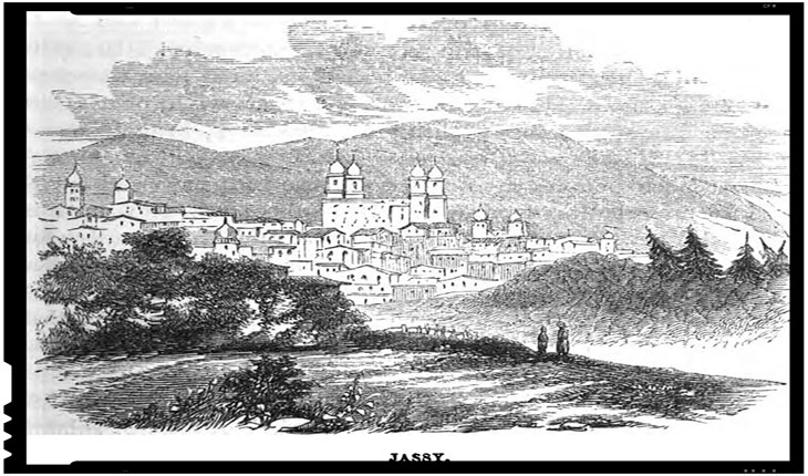 In centru, Catedrala Mitropolitana din Iasi într-un desen publicat în 1855